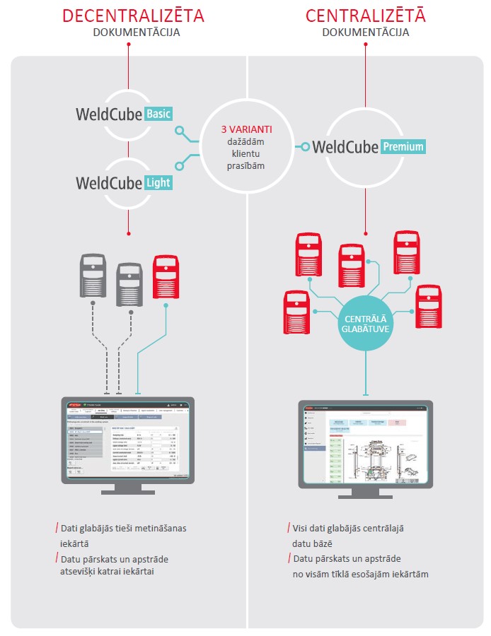 WeldCube Premium saglabā datus no visām tīkla iekārtām centralizētā datu bāzē.