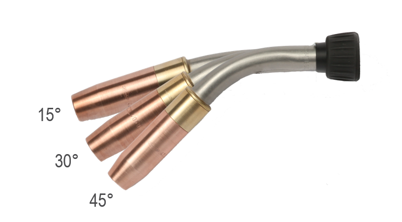 Pieejami dažādu garumu un leņķu degļu gali (0°/15°/30°/45°)