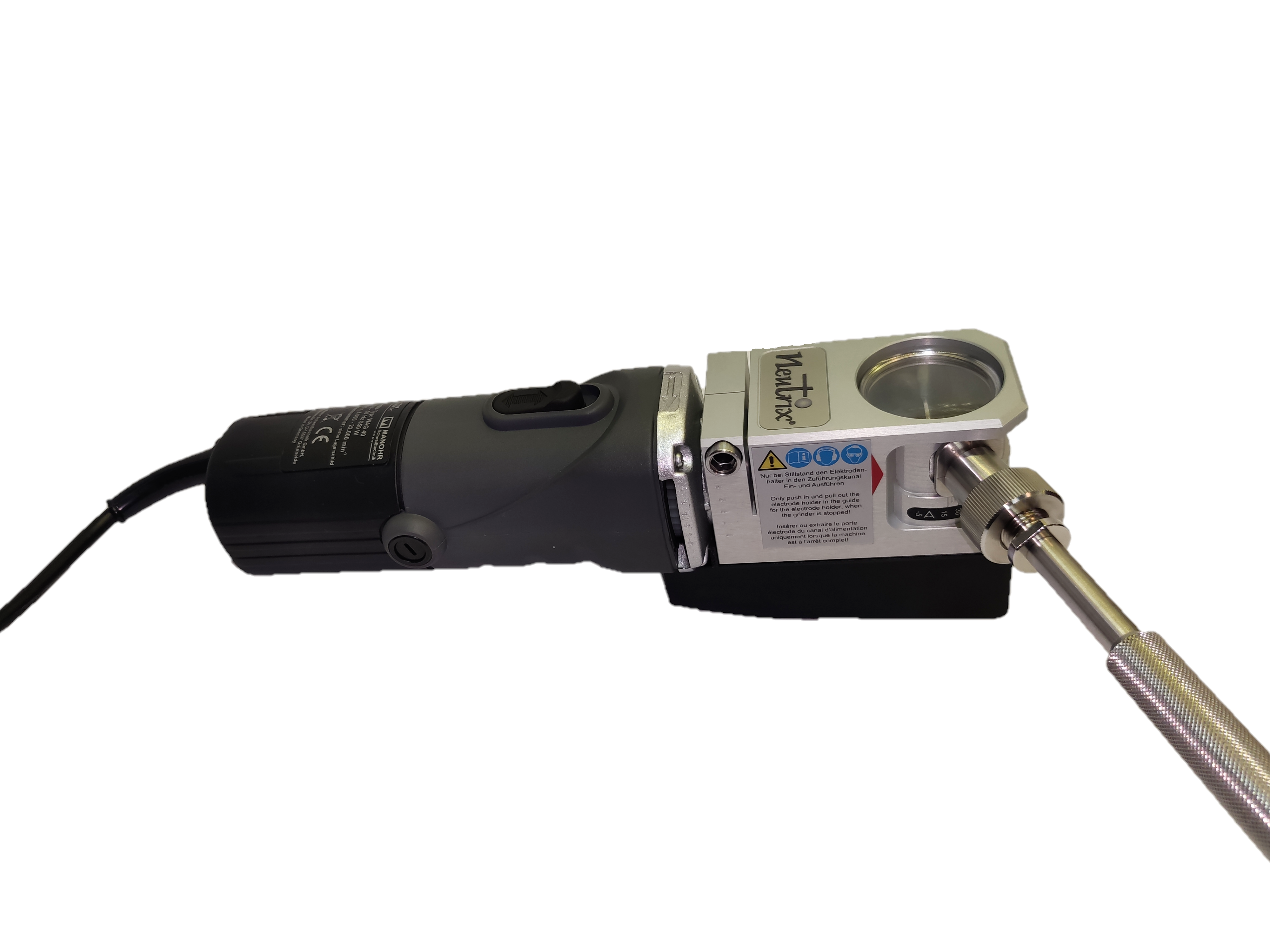 Ar speciālas cangas palīdzību var asināt volframa elektrodus no 15 mm garuma (orbitālai metināšanai, darbam grūti sasniedzamās veitās,...) |
