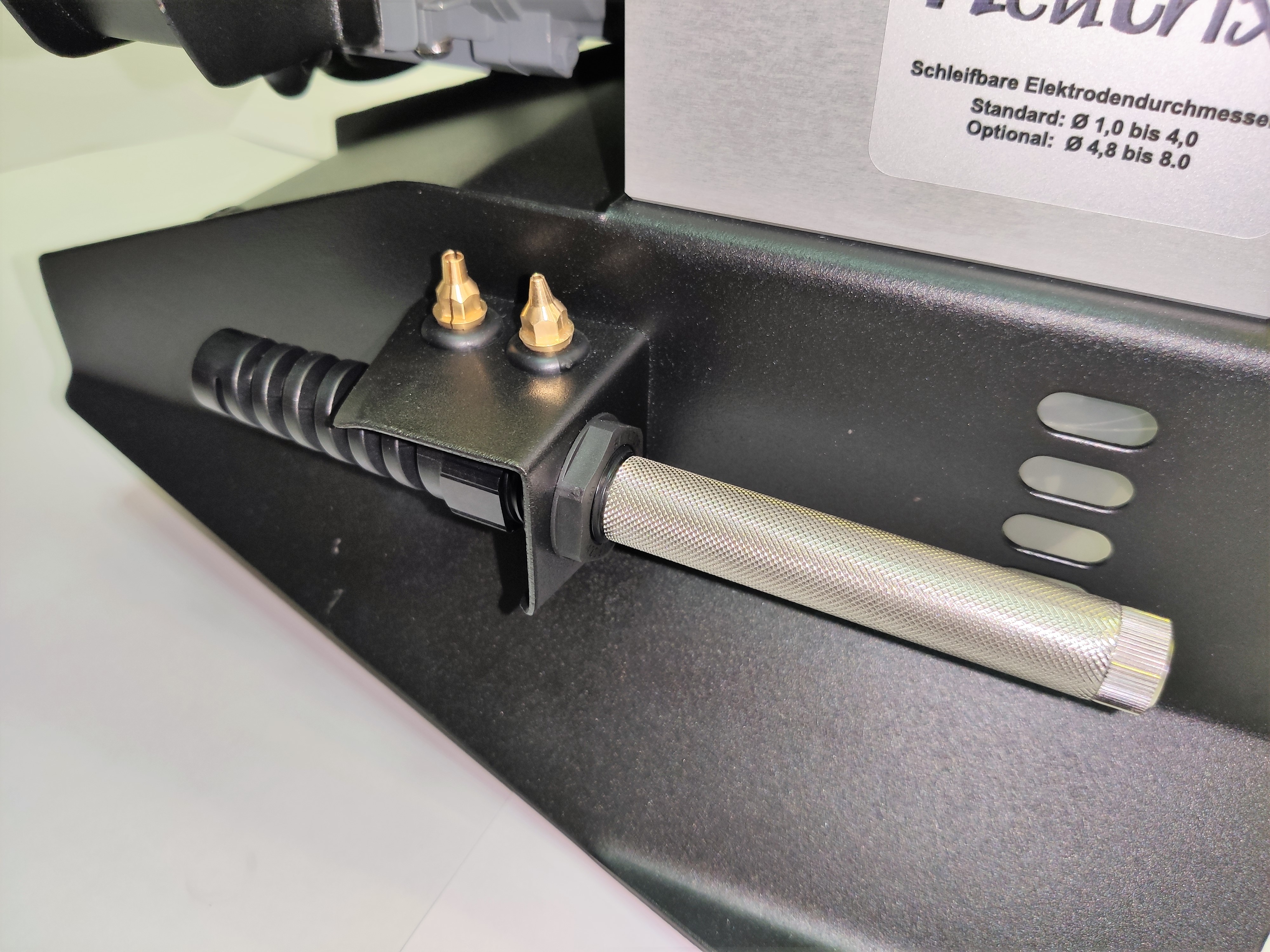 Precīza asināšana pateicoties volframa elektrodu turētājam. (Elektrodu turētājā iebūvēta kalibrēšanas skrūve). |