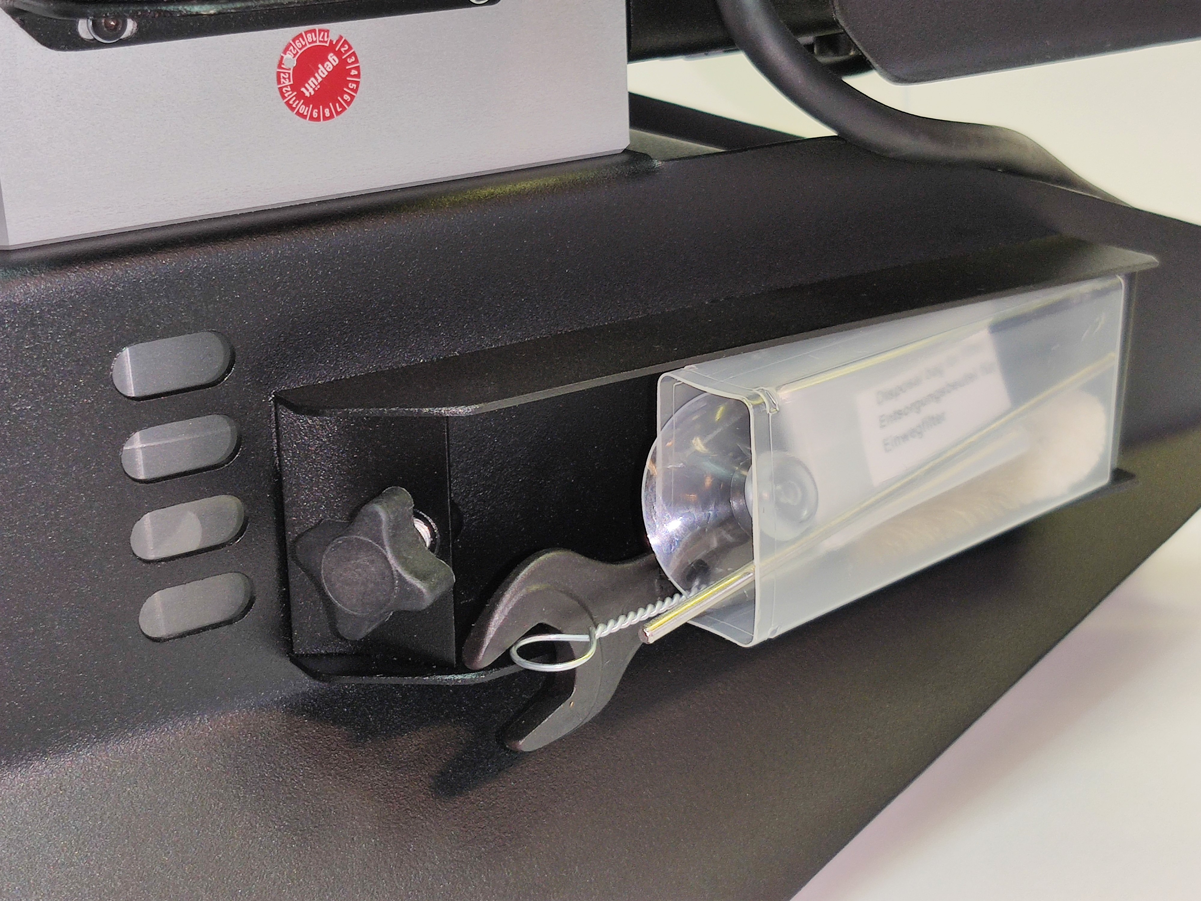 Iebūvēts putekļu filtrs kaitīgo volframa putekļu savākšanai. |