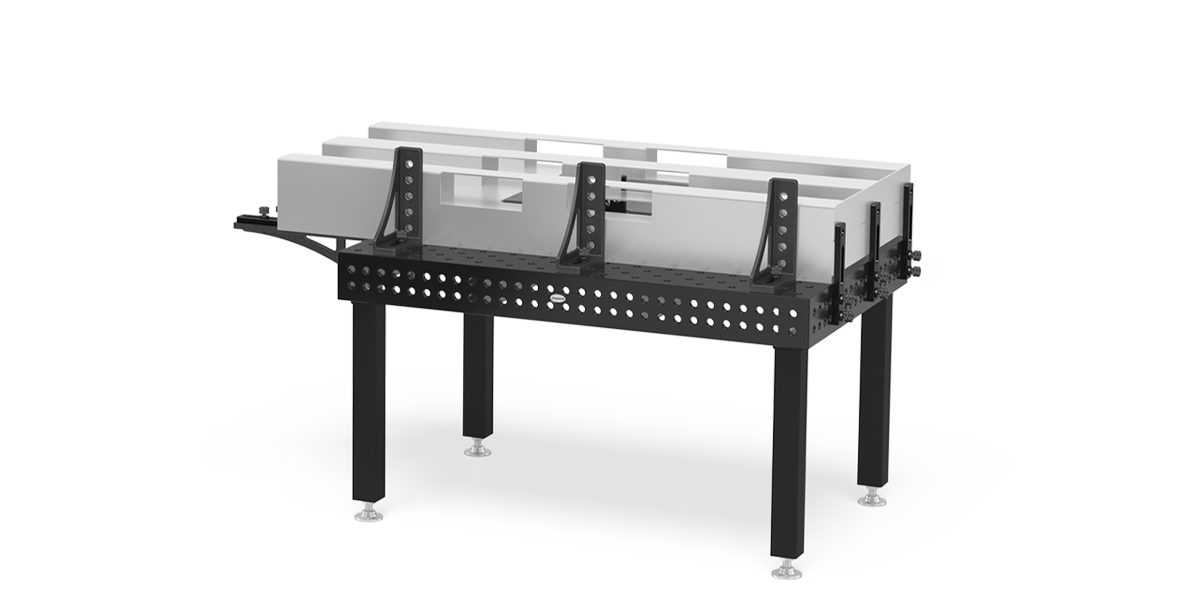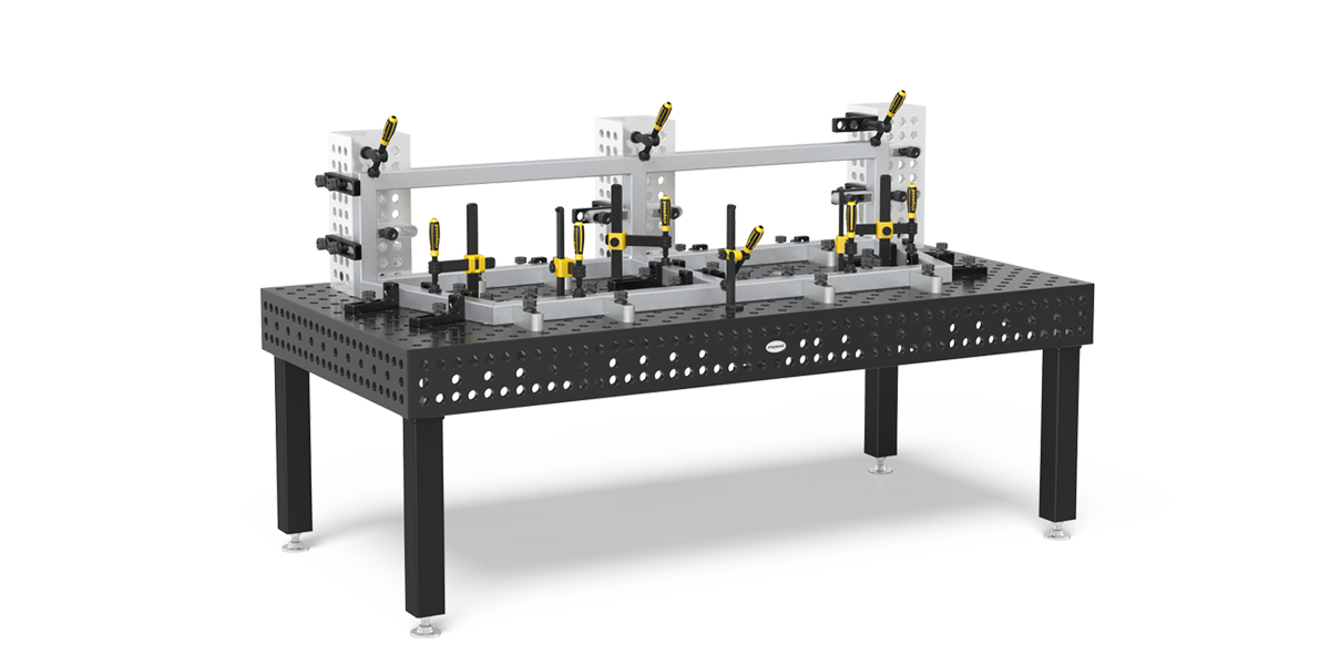 - Pateicoties mūsu metināšanas galdu urbumiem, tiek izveidota ārkārtīgi elastīga un daudzpusīga stiprināšanas virsma. Tas dod iespēju ātri un vienkārši izgatavot visdažādākās konstrukcijas, izmantojot leņķus, atdures un piespiedējus.