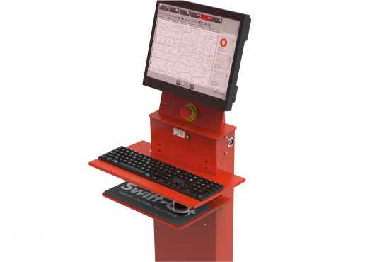- Operatoru konsole Ergonomiska operatoru konsole ar skārienjūtīgo ekrānu tastatūru un peli