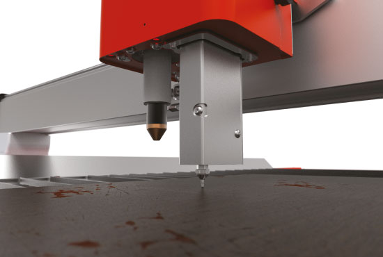 - Lāzera pozicionēšanas sistēma Palīdz precīzi iestatīt degļa sākuma pozīciju un pozicionēt loksni uz galda.