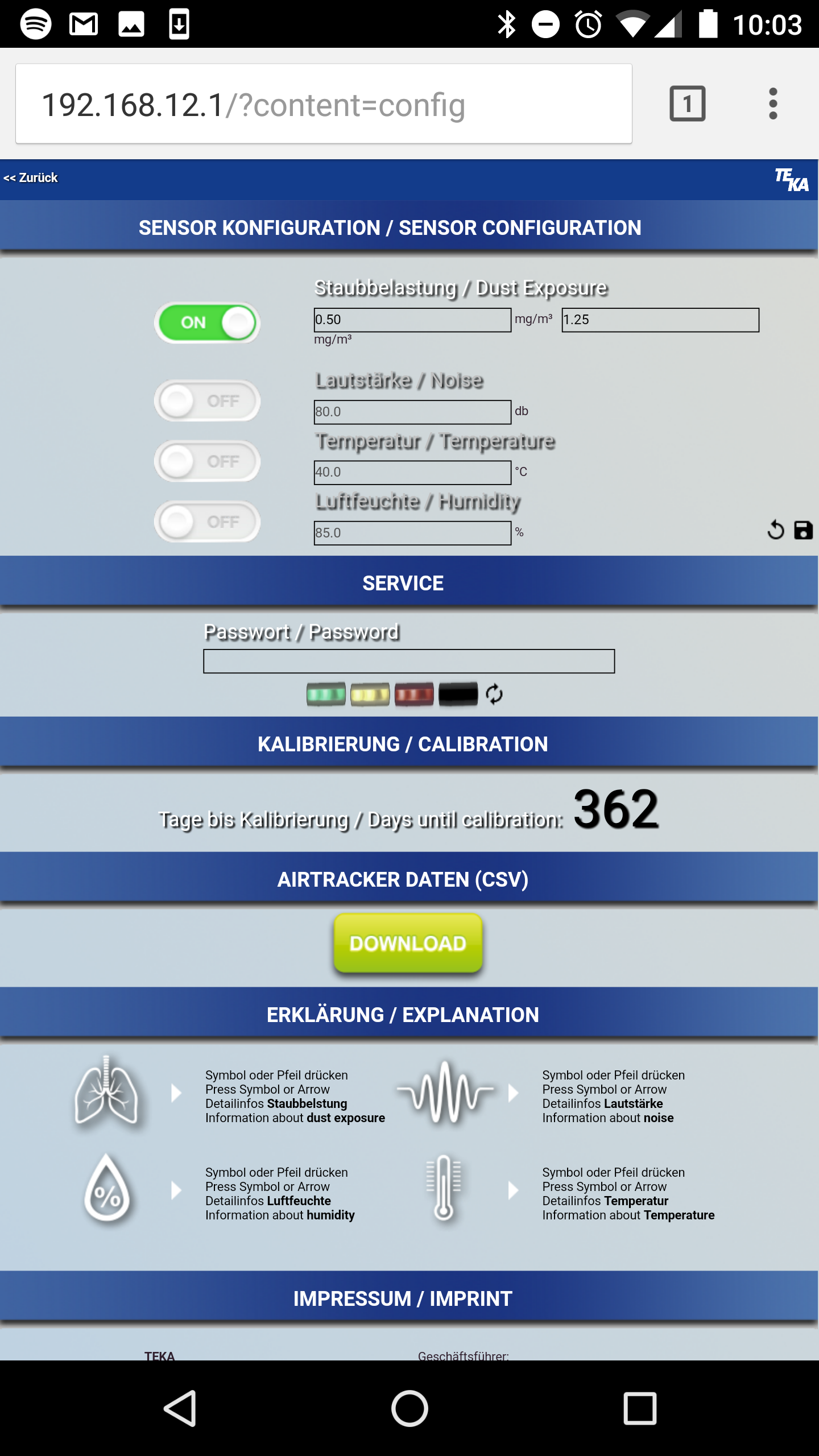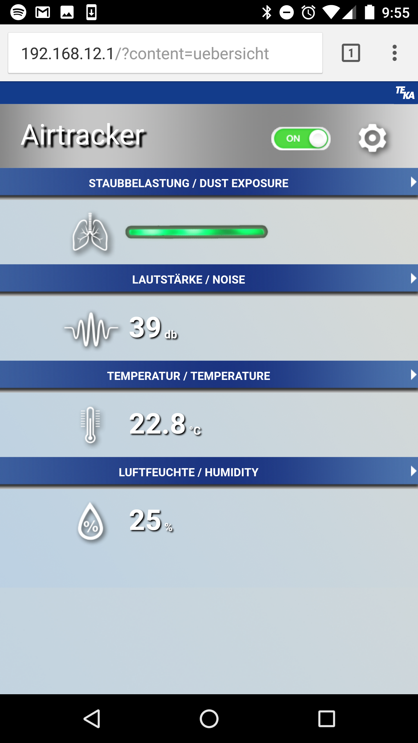 TEKA AirTracker darbības rādiss ir 30 metri. Papildus tas ir aprīkots ar temperatūras, mitruma un trokšņu līmeņa sensoriem.
