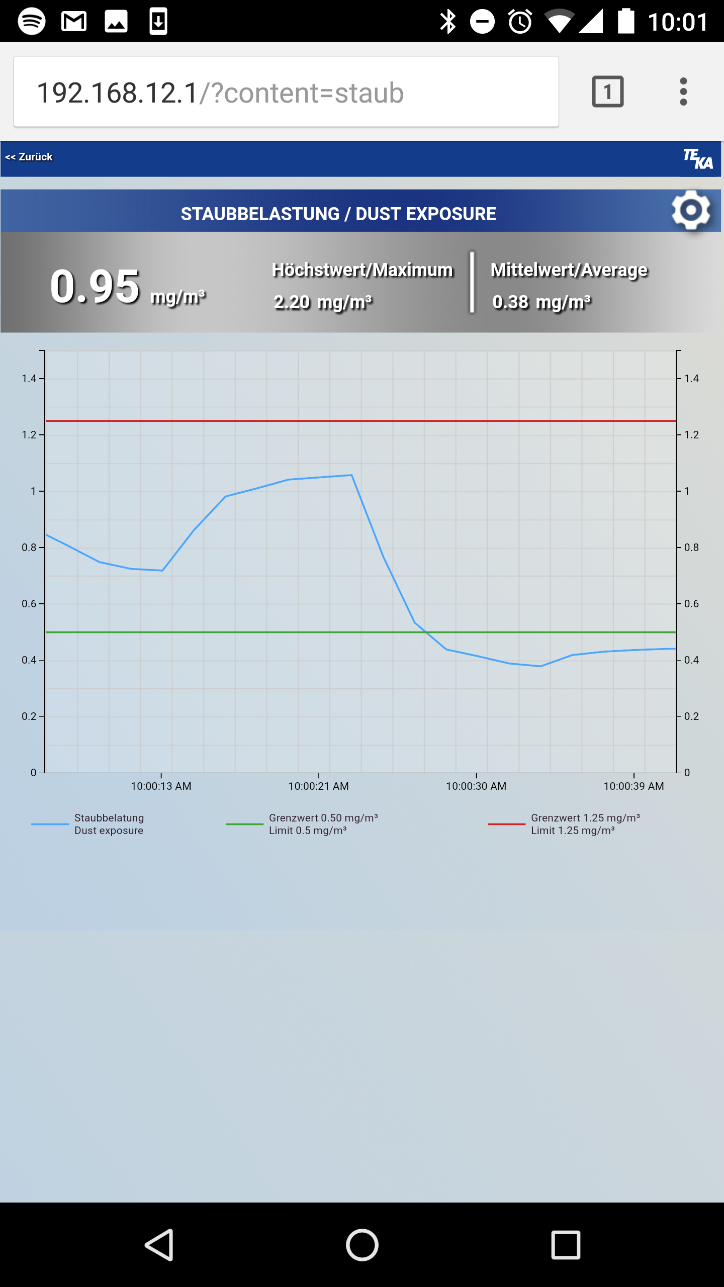 | Smalko putekļu koncentrācija: | 0 mg/m³ līdz 30 mg/m³ (precizitāte ± 0,1 mg/m3) |
